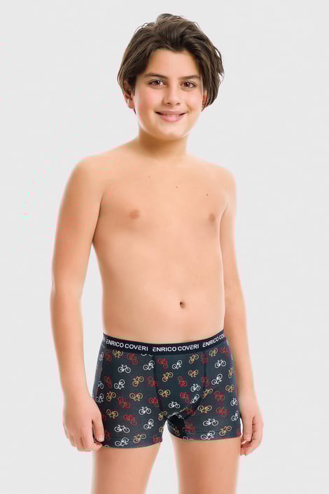 Bavlnené chlapčenské boxerky Bicykel z elastického úpletu, ktorý sa telu pekne prispôsobí. S motívom bicyklových kolies.