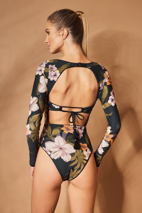 Obojstranné jednodielne plavky Maaji Indigo Capella v elegantnom prevedení s dlhými rukávmi. Hladká plavkovina sa dokonale prispôsobí krivkám tela a poskytne vám komfort nielen pri plážových a vodných športoch. Z jednej strany jednoduché čierne prevedenie, z druhej farebné kvety. S rafinovane riešeným chrbtom.
