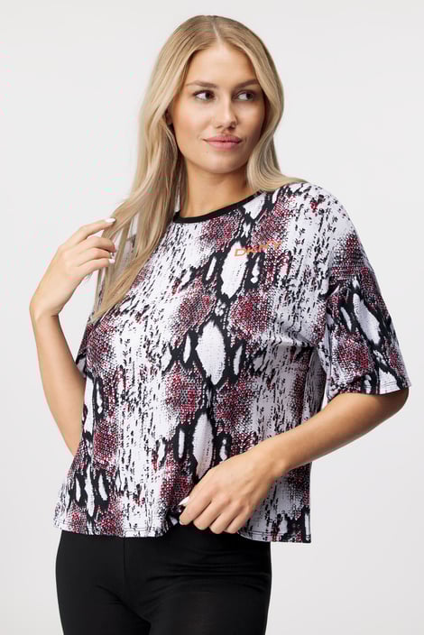 Dámsky komplet DKNY Midtown Easy pre vaše chvíľky leňošenia. Splývavé tričko s imitáciou hadieho vzoru je ľahké a príjemné na tele. Priliehavé legíny majú v páse širokú gumu. Z mäkkej viskózy.