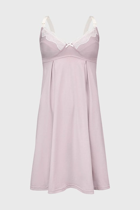 Dojčiaca nočná košieľka Amora v kratšej dĺžke v sebe spája ženskosť a pohodlie. Prsia oblečiete do odopínateľných košíčkov, ktoré umožňujú ľahké a rýchle nakŕmenie bábätka. Výstrih lemuje kontrastná čipka. Mäkučký úplet je dokonale komfortný, rovnako ako širšie nastaviteľné ramienka.