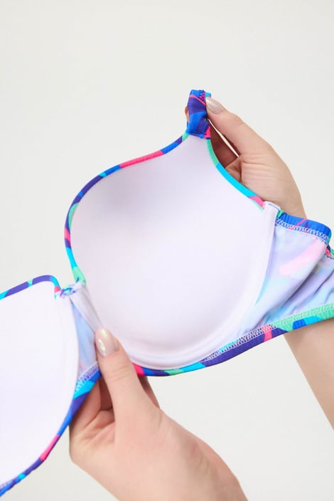 Oslňte dych vyrážajúcim výstrihom v dvojdielnych plavkách Azure Push-Up. Podprsenka s mäkkými Push-Up košíčkami pozdvihne vaše prsia do výstrihu, kde ich krásne zaoblí a nenechá ich tak bez povšimnutia. Doplnené hladkými nohavičkami klasického strihu. V pestrofarebnom dizajne, z dielne špecialistov Astratexu.