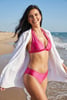 V trblietavých dvojdielnych plavkách Satin Pink II sa budete na pláži vynímať. Trojuholníkové košíčky podprsenky sú mäkko vystužené a prsia tak pekne dotvarujú a vystavia v dekolte. Obvod aj ramienka si zaviažete podľa svojich potrieb. Nohavičky v brazílskom strihu opticky zaoblia vaše krivky. Materiál je príjemne mäkký a so saténovým vzhľadom. Z dielne špecialistov Astratexu.