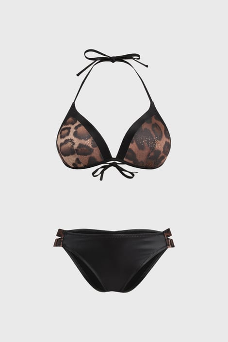 Dvojdielne plavky Wild Glitter zalichotia vašim ženským krivkám. Trojuholníkové košíčky s Push-Up efektom ľahko prsia pozdvihnú a doplnia požadovaný objem. Klasické nohavičky zdobia na bokoch dvojité strappy pásiky. V kombinácii čiernej a trblietavého zvieracieho vzoru.