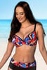 Horný diel plaviek Alis Butterfly v pestrofarebnom dizajne s čiernym lemovaním. Mäkko vystužené košíčky zdobí naberanie, Push-Up efekt doplní žiaduci objem a vystaví prsia v nízkom strede.