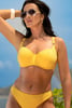 Horný diel plaviek Sunny, to je jednoduchý, ale dokonale spracovaný dizajn v žiarivo žltej farbe. Mäkko vystužené košíčky s kosticami a vyšší stred dodajú spoľahlivú oporu aj veľkému poprsiu. Jemne rebrovaný materiál zdobený detailmi v striebornej farbe je opatrený protižmolkovacou úpravou a UV ochranou.
