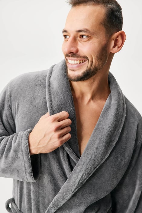 Pánsky hrejivý župan Must RCF z mäkkého mikroplyšu. Elegantný strih s bočnými vreckami a zaväzovaním v páse.