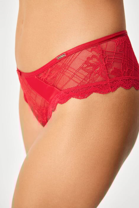Klasické nohavičky Hasina oblečú vaše krivky do jemnej čipky. Prednú časť zdobia saténové aplikácie.