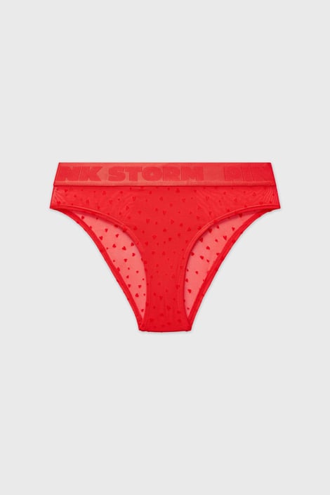 Klasické nohavičky PINK STORM Lovecode z hravo priesvitnej sieťoviny s drobnými srdiečkami sú stelesnením vášho sebavedomia. Široká guma v páse krásne zvýrazní siluetu. Zdobia ju logá značky, ale predovšetkým je dokonale mäkká a nikde netlačí. Predná časť je opatrená podšívkou z komfortného úpletu. Premyslené a navrhnuté našimi špecialistami v Astratexe.
