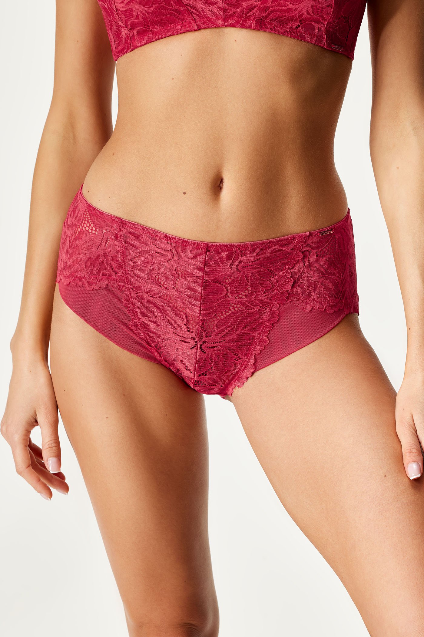 Nohavičky Raelynn z priehľadnej čipky sa stanú ozdobou vášho bielizníka. Klasický strih s vyšším pásom je pohodlný a vhodný aj pre plnšiu postavu.