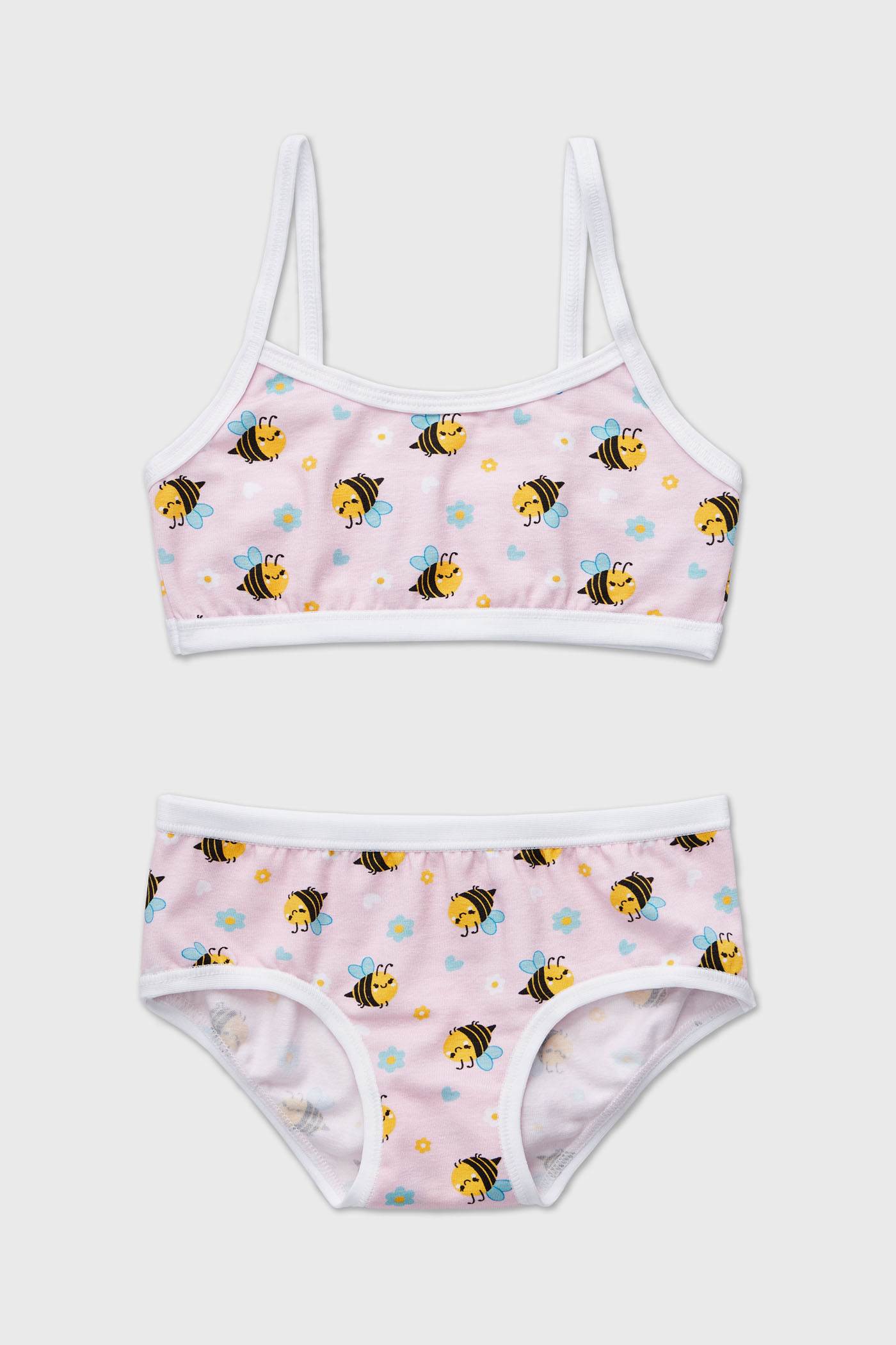 Dievčenská podprsenka a nohavičky Ape ako dokonalý komplet pre malé slečny. Lambádovú podprsenku s úzkymi ramienkami dopĺňajú klasické nohavičky. Z príjemného bavlneného úpletu.