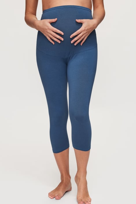 Tehotenské bavlnené legíny Elen v 3/4 dĺžke. Oblasť pásu je veľmi pohodlne spracovaná, látka objíme celé bruško a nikde na neho netlačí.
