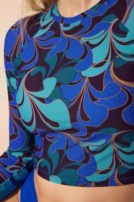 Plavecké tričko Surf II s UV ochranou a dlhými rukávmi zvýši čas vášho pobytu na slnku. Užívajte si šantenie vo vlnách bez obáv zo spálenia. Vnútri kratšieho trička s krásnou potlačou nájdete všitú oblasť košíčkov s obvodovou gumou pod prsami a vyberateľnými vypchávkami. Navrhnuté špecialistami Astratexu.