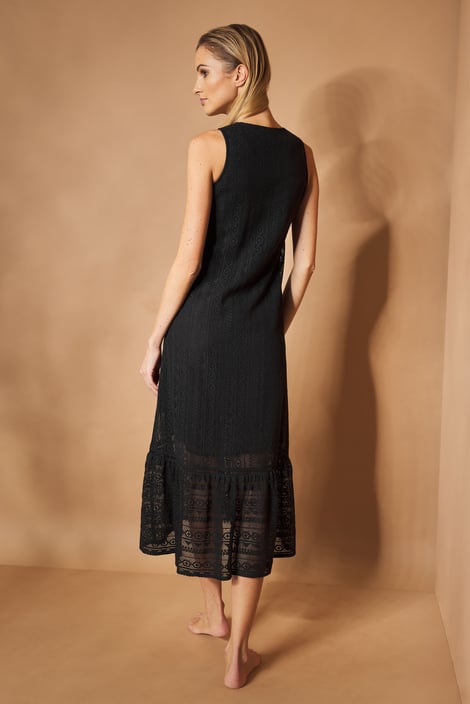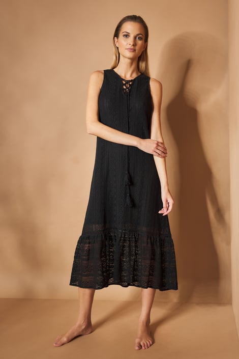 Plážové šaty Caroline z elegantnej čiernej čipky. Vo voľnom strihu, ktorý oceníte nielen v sparnom lete.