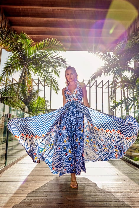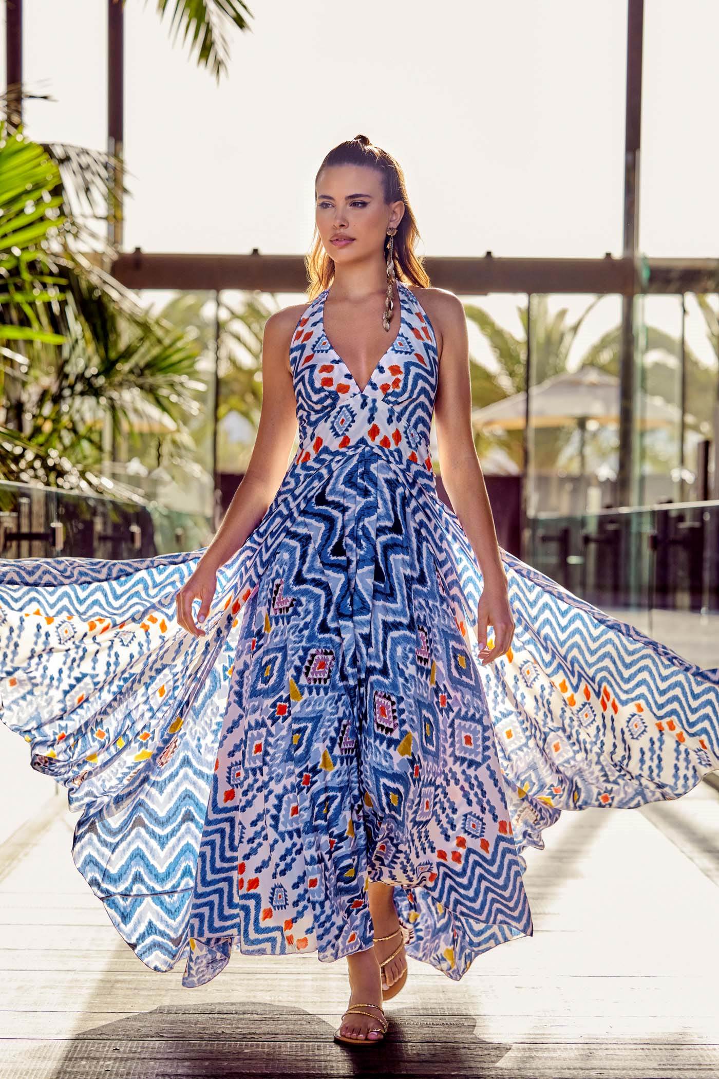 Plážové šaty Iconique Olimpia I s farebným vzorom sú stelesnením ženskosti. Vďaka pružnému chrbtu a za krkom zaväzovacím ramienkam sa krásne prispôsobia vašim krivkám. Dvojitá sukňa bude nádherne viať v letnom vánku.
