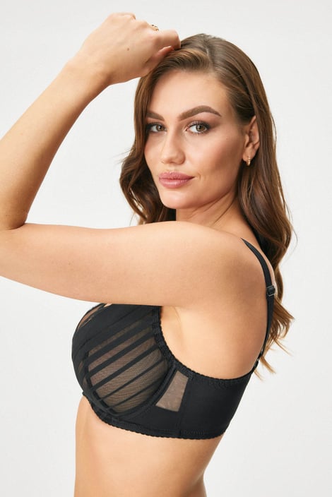 Podprsenka Alizee je opatrená nevystuženými košíčkami s kosticami, ktoré doprajú prirodzenú oporu aj väčším prsiam. Vyšší stred potom postráži, aby zostali na svojom mieste. Kombinácia jemného tylu a sieťoviny vytvára efektné prúžky.
