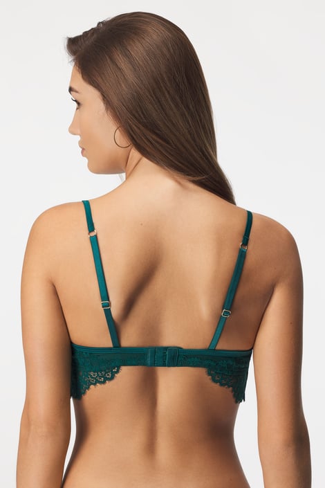 Podprsenka Emily Bralette je ušitá z jemnej sieťoviny a nežnej kvetinovej čipky. Nevystužené košíčky ponechávajú prsiam ich prirodzený tvar. Klasické kostice nahrádza zosilnený šev.