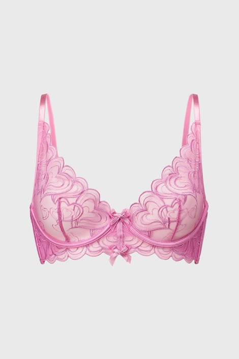 Podprsenka Esme Pink bude patriť k romantickým kúskom vášho bielizníka. Nevystužené košíčky tvoria jemný priesvitný tyl, ktorý zdobia vyšívané srdiečka. S ramienkami v saténovom vzhľade.