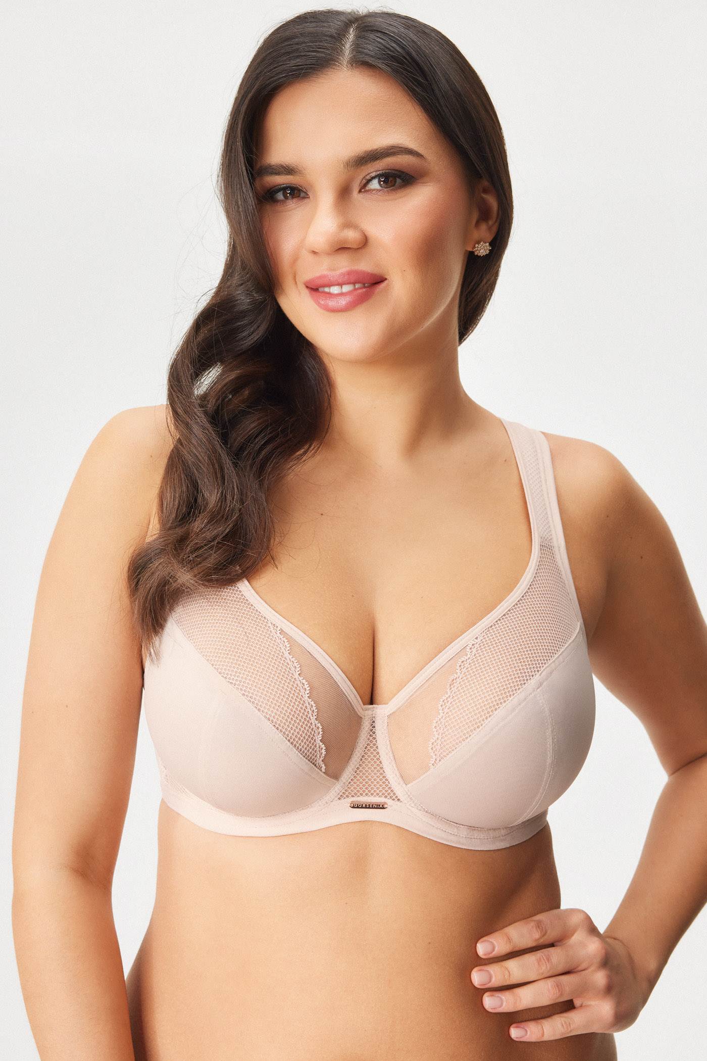 Nevystužená podprsenka Luisse New s košíčkami v obľúbenom T-strihu je vhodná aj pre veľké prsia. Horná časť košíčkov je s priesvitným tylovým efektom, výstrih je spevnený lemom. Komfortné polstrované ramienka sa nezarezávajú.