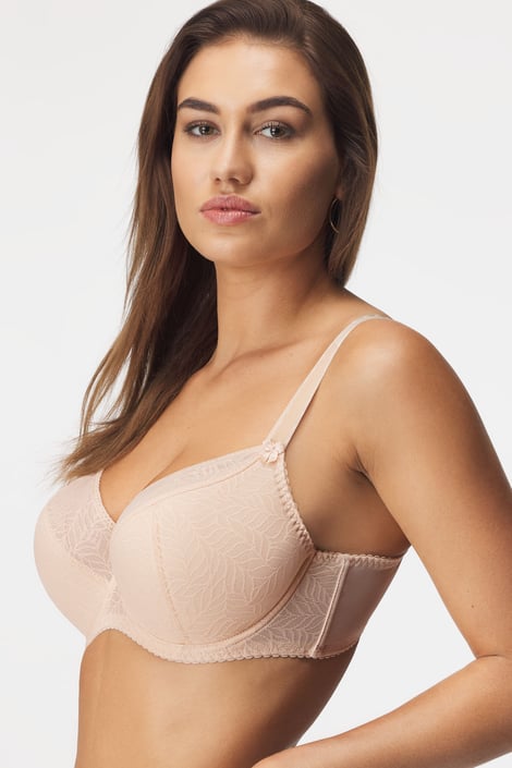 Podprsenka Sandy new je ideálna aj pre ženy s plnšími prsami. Polovystužené košíčky majú mäkkú výstuž, T-strih prepožičia prsiam krásny guľatý tvar. Košíčky sú potiahnuté jemnou sieťovinou so vzorom listov.