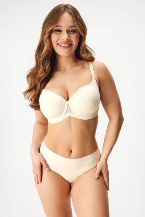 Vystužená podprsenka Violeta by vám nemala v bielizníku chýbať. Mäkučké košíčky sa vytvarujú podľa vašich pŕs, kostice ponúknu potrebnú oporu. Boky a obvod tvorí jemná dvojitá sieťovina, ktorá siaha až k podpazušiu a pomáha diskrétne sformovať mäkké faldíky.