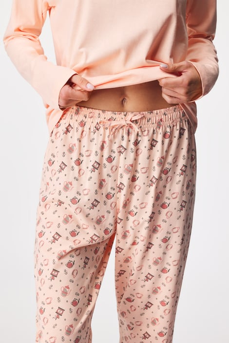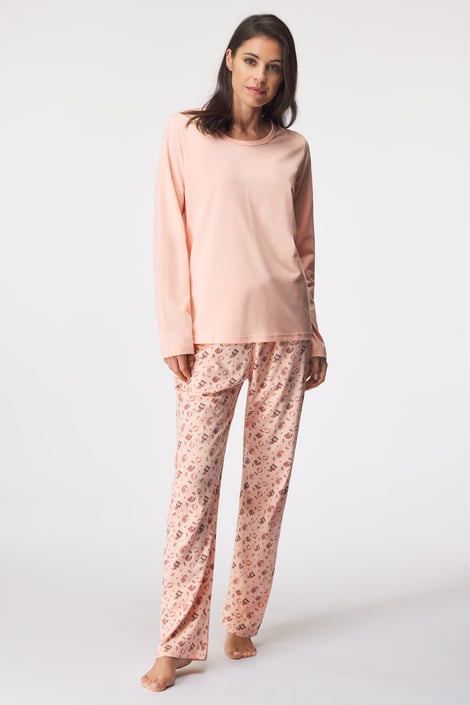 Dámske pyžamo Alyvia zo 100 % bavlny pre vaše nočné pohodlie. Tričko s dlhými rukávmi ochráni ruky pred prechladnutím, dlhé nohavice vo voľnom strihu vás nikde neobmedzujú.