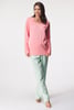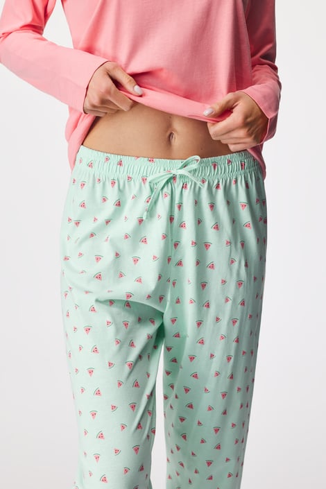 V dámskom pyžame Melón sa vám bude spať ako v bavlnke. Tričko s dlhými rukávom aj voľnejšie nohavice zdobí decentná potlač melónov.
