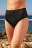 Spodný diel dámskych tankín Mokolo I v minimalistickej čiernej. Vyšší strih nohavičiek pomôže zakryť bruško, pás môžete v prípade potreby ohrnúť.