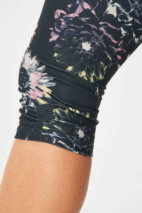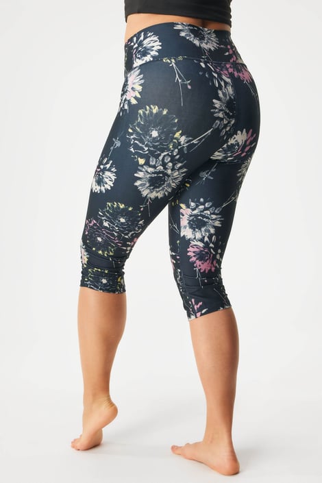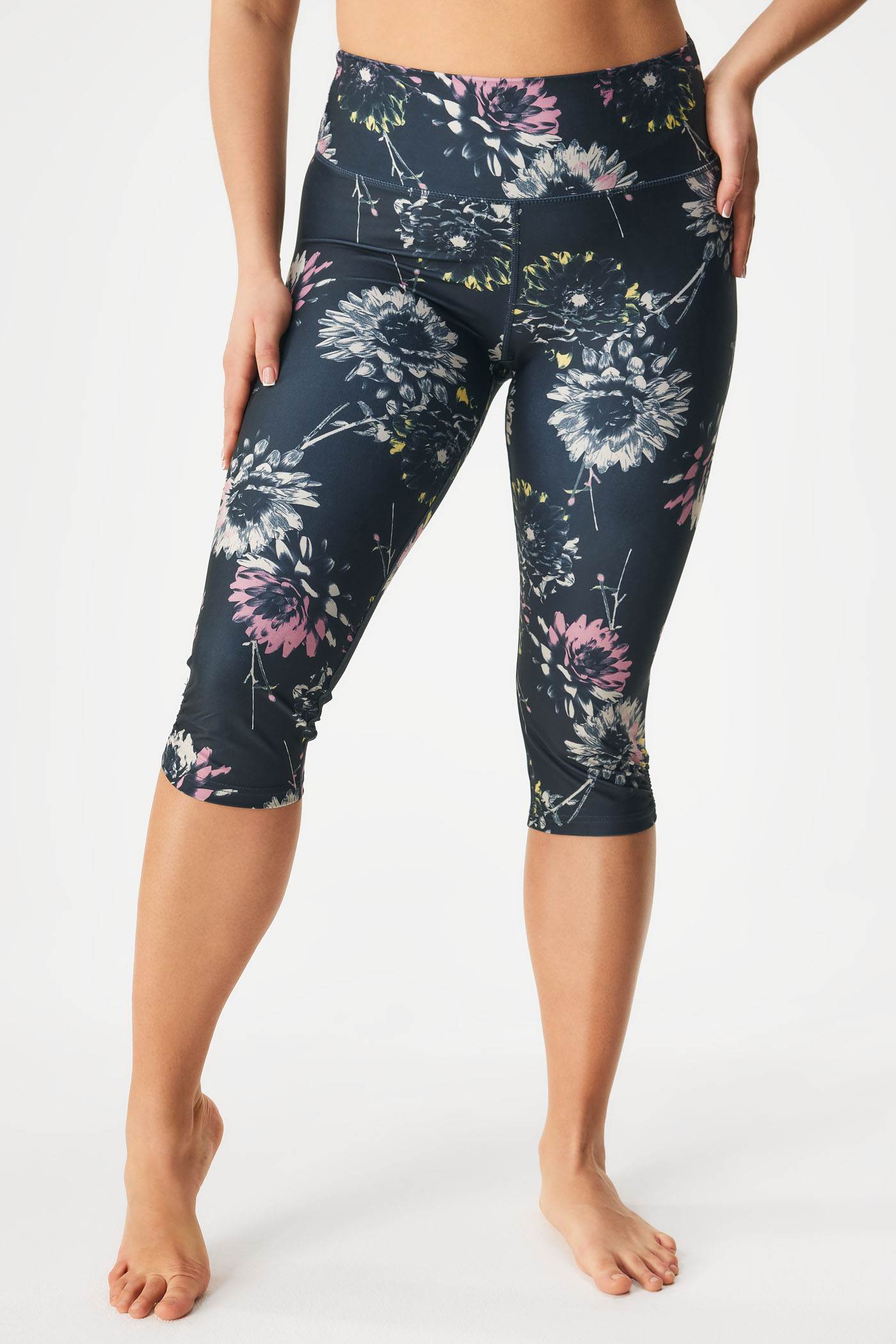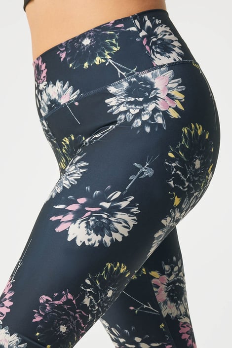 Športové legíny ONLY Play Curvy ONPJam 2 Sky s kvetinovou potlačou. V trojštvrťovej dĺžke so širokým pásom, ktorý jemne obopne bruško. S naberaním na vonkajšom okraji nohavíc.