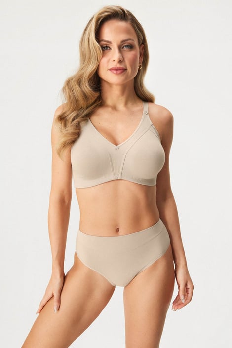 Zmenšujúca podprsenka Blanca bude patriť k najpohodlnejším kúskom z vášho bielizníka. Nevystužené košíčky vynikajú pevným elastickým materiálom, ktorý prsia jemne objíme a opticky zmenší. Prevedenie bez kostíc ponúkne absolútne pohodlie aj veľkým prsiam.